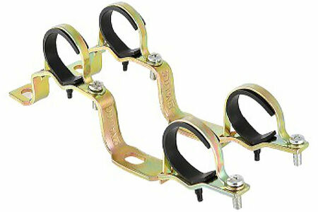 Кронштейны для крепления пары (подающий и обратный) стандартных коллекторов условным диаметром 1" к несущей конструкции (стене или коллекторному шкафу). Состоят из крепежной планки, выполненной из стальной анодированной полосы толщиной 3 мм, к которой вин