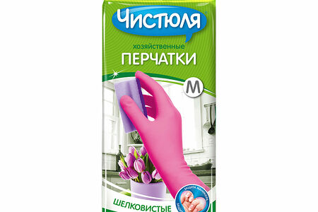 Хорошая плотность и качественное напыление защитят ваши руки и маникюр при любых домашних работах от воды, моющих средств, красящих и сильно пахнущих продуктов. Не слипаются при хранении: внутреннее напыление из 100 % хлопка, имеют очень приятную на ощупь шелковистую фактуру. Перчатки безопасны для работы с пищевыми продуктами.СОВЕТ: в перчатках ЧИСТЮЛЯ можно чистить рыбу, лук, чеснок (чтобы руки не пропитались неприятным запахом), перебирать грибы и ягоды (чтобы защитить руки от окрашивания), натирать продукты на терке (чтобы не поцарапать маникюр).Размер: M