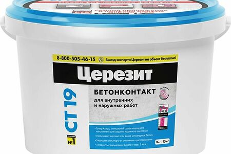 Грунтовка Церезит CT 19 предназначается для гладких бетонных оснований, наносится перед клеем для керамики, гипсовыми и цементными штукатурками.