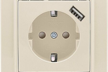 Розетка 1-местная СП с/з Минск 16А бежевая с защ. штор. с USB 1А EKF