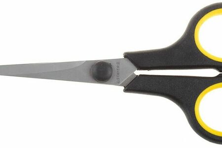 Усиленные ножницы STAYER применяются для разрезания как толстых, так и тонких листовых материалов (ткани, картона, резины, кожи, бумаги, пленки). Они изготовлены из высококачественной нержавеющей стали и имеют прецизионную заточку. Благодаря этому достигается точность и минимальные усилия при резе.- Форма: прямые - Длина общая: 135 мм- Длина режущей кромки: 55 мм- Материал лезвия: нержавеющая сталь - Материал рукояток: двухкомпонентный пластик - Антифрикционное покрытие: да - Разборная конструкция: нет - Регулируемое соединение: нет