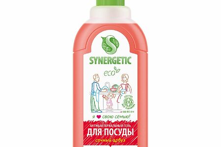 Концентрированный гель для посуды с антибактериальным эффектом SYNERGETIC - это экологичное, безопасное и эффективное средство для мытья всех видов посуды, в том числе детской, кухонного инвентаря и детских игрушек от любых видов загрязнений. Мягкие биоразлагаемые тензиды из растительного масла обеспечивают хорошее пенообразование и эффективно удаляют жир и запахи даже в холодной воде. Растительный глицерин в составе средства защищает кожу рук от сухости и раздражения. Международный экологический сертификат ICEA подтверждает биоразлагаемость, безопасность и эффективность средства. Полностью смывается водой. Дерматологически протестировано в Европе протокол испытаний № 18/000493907 от 15.11.2018 г.Биоразлагаемые компоненты не вредят микрофлоре септических установок.