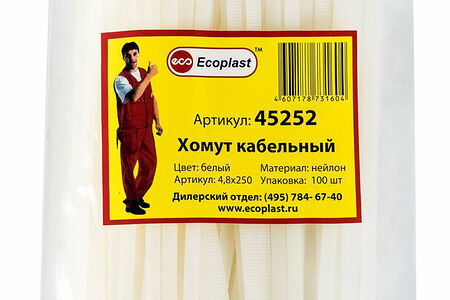 Хомут Ecoplast 4,8 мм D5-65 мм нейлон/полиамид белый 100 шт доставка