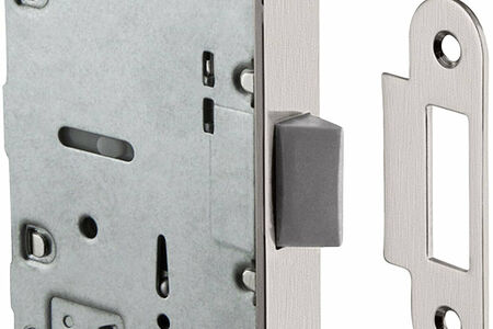 Для того чтобы зафиксировать дверь в закрытом положении, чаще всего используется специальная защелка. Этот механизм может быть установлен в деревянную дверь любого внутреннего помещения. В защелке присутствует язычок со сменным направлением за счет чего устройство можно устанавливать с правой или с левой стороны двери. Ответная овальная планка крепится с торца дверного косяка.