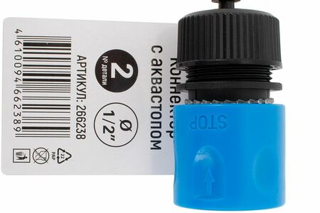 Коннектор с аквастопом позволяет быстро подключить к шлангу 1/2" разбрызгиватель или другую насадку.