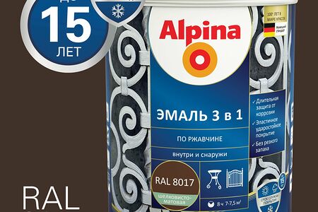 Эмаль по ржавчине Alpina 3В1 шоколад 0,75 л доставка