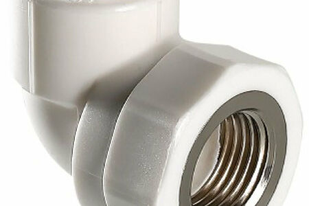 Двухсторонний металлопластиковый фитинг для соединения под углом 90 градусов друг к другу полипропиленового трубопровода и компонента инженерной системы с резьбовым подключением, 20 х 1/2". Резьба фитинга - внутренняя трубная, по ГОСТу 6357.