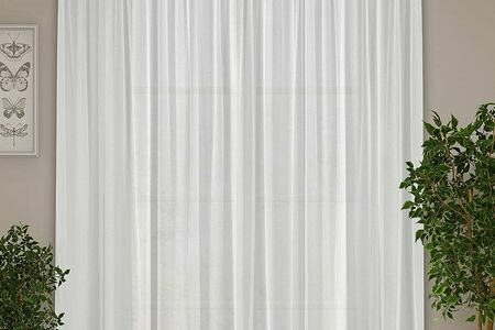Классическая тюлевая штора из тонкого однотонной льна белого цвета, размер 300x270 см идеально подходит для интерьера в современном и классическом стиле.