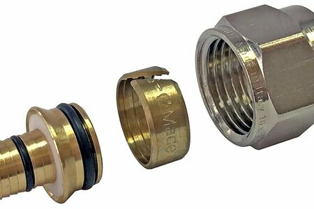 Фитинги компрессионные STOUT предназначены для присоединения труб STOUT к штуцерам оборудования STOUT с наружной резьбой 1/2”, 3/4” и соответствующей геометрией.