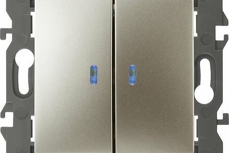 Выключатель 2-клавишный подсветка Эра Elegance шампань 14-1105-04. Оснащён автоматическими клеммами для надёжной фиксации жил кабеля в механизме. Рамки приобретаются отдельно. Рамки Эра Elegance ПЛАСТИК: 1 пост 14-5001-хх, 2 поста 14-5002-хх, 3 поста 14-5003-хх, 4 поста 14-5004-хх, 5 постов 14-5005-хх; СТЕКЛО: 1 пост 14-5101-хх, 2 поста 14-5102-хх, 3 поста 14-5103-хх, 4 поста 14-5104-хх; МЕТАЛЛ: 1 пост 14-5201-хх, 2 поста 14-5202-хх, 3 поста 14-5203-хх, 4 поста 14-5204-хх; ДЕРЕВО: 1 пост 14-5301-хх, 2 поста 14-5302-хх, 3 поста 14-5303-хх, 4 поста 14-5304-хх (хх - код цвета: 00-прозрачный, 01-белый, белёный дуб, 02-слоновая кость, 03-алюминий, 04-шампань, 05-чёрный, чёрное дерево, 07-ясень, 09-дуб, 10-венге, 11-клён, 14-медь, 21-жёлтый, 22-оранжевый, 23-красный, 25-бордо, 26-лайм, 27-зелёный, 28-голубой, 29-синий, 30-розовый, 31-мокко, 32-серый, 41-сталь, 42-титан).