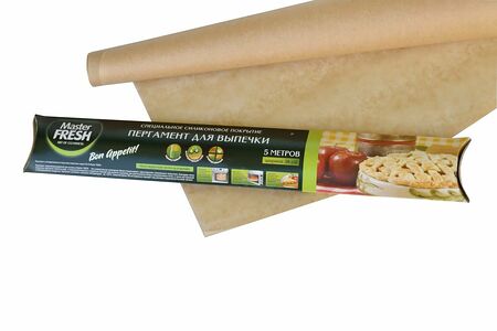 Пергамент для выпечки Master FRESH европейского производства с двухсторонним силиконизированным покрытием, благодаря этому покрытию пергамент является водо- и жиронепроницаемым и идеально подходит для выпечки в духовке, для приготовления блюд в микроволновых печах, а также для хранения и замораживания продуктов. Выпечка не пригорает и равномерно пропекается даже при высоких температурах до 230 C , что избавляет от чистки рабочих поверхностей.Пергамент помогает приготовить качественную выпечку и сохранить настоящий вкус продуктов! Рулон шириной 38 см – оптимальная ширина для современной духовки! Дополнительные советы: удобно готовить дома роллы, удобно заворачивать в пергамент продукты для хранения в холодильнике, удобно использовать в хлебницах. При бережном использовании допускается применение пергамента многократно. Пергамент Master FRESH упакован в индивидуальную картонную многоразовую коробочку, что очень удобно при хранении, так как пергамент не разматывается при использовании в ящике.