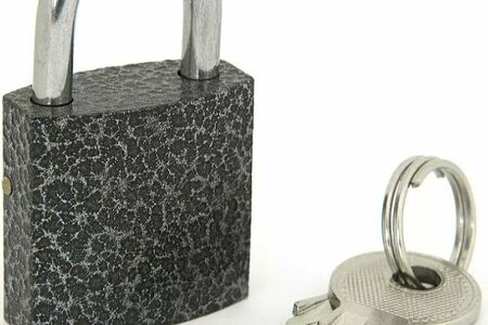 Классический висячий замок средних размеров. Кейс с инструментами, дверца металлического ящика или щитка - куда только не вешают этот амбарный замок.