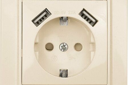 Минск Розетка 1-местная СП с/з 16А бежевая с защ. штор. с 2 USB 2,1А EKF