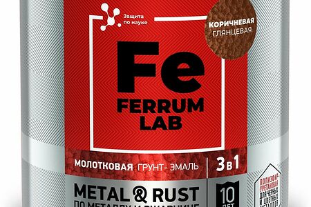 Грунт-эмаль FERRUM LAB по ржавчине 3 в 1 молотковая коричневая, банка 0,75 л доставка