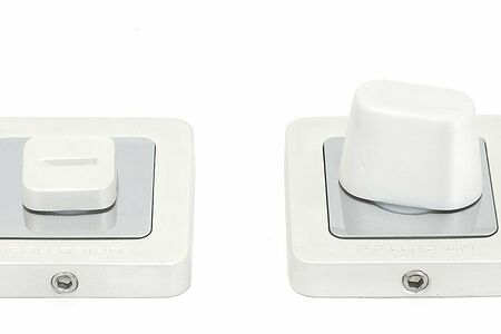 Квадратная накладка-фиксатор с заверткой для запирания межкомнатной двери изнутри. Используется с дверной ручкой Kernel PD и другими моделями в цвете «палладий».