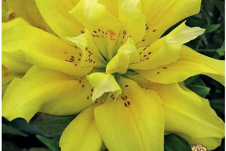 Фата Моргана- высота растения 95 см, цветок желтый с темно-красным крапом на 1/3 длины каждого лепестка, диаметр 16,5 см.