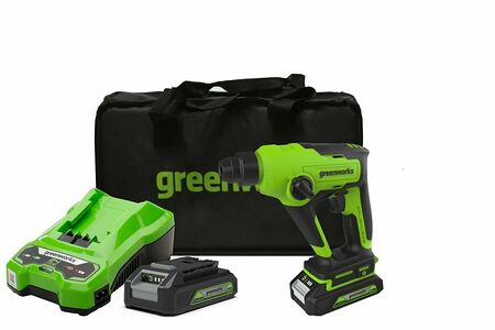 Перфоратор аккумуляторный Greenworks GD24SDS1K2 24 В с АКБ и З/У - предназначен для проведения строительных и ремонтных работ дома и на даче. Незаменим в местах, где отсутствует источник питания или доступ к нему затруднен.