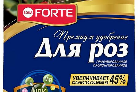 Удобрение BONA FORTE для пионов и роз представляет собой добавку в виде гранул, ускоряющую рост и развитие растений. В состав входит азот, фосфор, калий, кремний, магний, янтарная кислота, витамины С, В1, РР, микроэлементы.