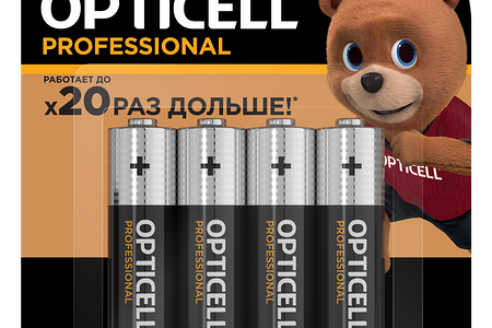 Многоцелевые батарейки улучшенной формулы Opticell Professional работают до 20 раз дольше* (*по сравнению с солевой батарейкой типа АА. Результаты могут варьироваться в зависимости от устройства и интенсивности использования).