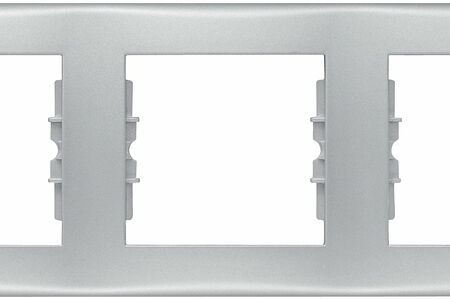 Декоративная рамка для монтажа розеток и выключателей не только украсит пространство вокруг электрооборудования, но и защитит его от частого истирания. Модель предполагает горизонтальную ориентацию и рассчитана на три транспортировочных поста. Изделие изготовлено из термопластика и имеет глянцевый алюминиевый оттенок, который гармонично сочетается с другими элементами похожего цвета.