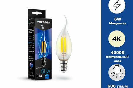 Лампа светодиодная свеча на ветру. Cande wind. Ватность 6 W. Цоколь Е14. Цветовая температура 4000К