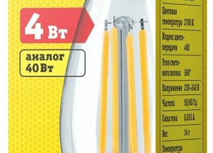 Лампа светодиодная свеча E27 4 Вт 2700 К filament тёплый свет доставка