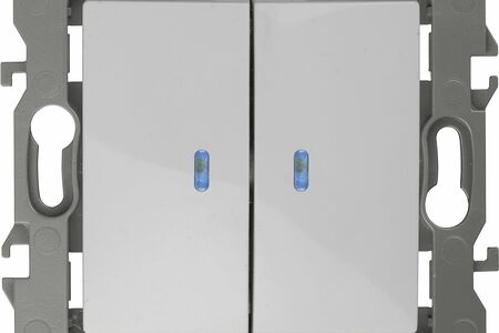 Выключатель 2-клавишный с подсветкой серии Эра 12 скрыт.установки механизм цвет белый 12-1105-01. Номинальные характеристики 10А 250В . Сделан из поликарбоната, оснащёно автоматическими клеммами для быстрй и надёжной фиксации жил кабеля в механиме. Парные клеммы обеспечивают соединение шлейфом. Монтаж в подрозетник производится и на лапки, и на винты. Рамки приобретаются отдельно. Рамки Эра 12: 1 пост 12-5001-хх, 2 поста 12-5002-хх, 3 поста 12-5003-хх, 4 поста 12-5004-хх, 5 постов 12-5005-хх. Рамки Эра 12 Сатин: 1 пост 12-5101-хх, 2 поста 12-5102-хх, 3 поста 12-5103-хх, 4 поста 12-5104-хх, 5 постов - 12-5105-хх (хх - код цвета: 01-белый, 02-слоновая кость, 03-алюминий, 04-шампань, 05-антрацит, 06-чёрный, 07-ольха(белёный дуб-сатин), 08-вишня, 09-дуб, 10-венге, 11-сосна, 21-жёлтый, 22-оранжевый, 23-красный, 24-охра, 25-бордо, 26-лайм, 27-зелёный, 28-голубой, 29-синий).