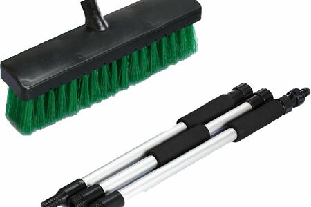 Щетка имеет разъем 1/2 дюйма и легко подключается к садовому шлангу.