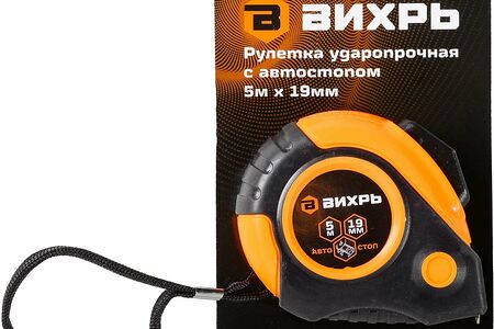 Рулетка ВИХРЬ 5мх19мм, автостоп 73/11/1/5 представляет собой измерительный инструмент.