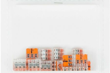 "Клеммы универсальные трехпроводные представляют собой многоразовый механизм с удобным плоско-пружинным зажимом. Предназначены для соединения 3-х проводников тонкого сечения. Изделие выполнено из прочного и качественного материала, отличается хорошими техническими характеристиками. В комплектации предусмотрены изделия в количестве 20 штук. Благодаря своим компактным размерам клеммы WAGO идеально подходят для применения в условиях ограниченного пространства. Монтаж значительно облегчается, также обеспечивается дополнительная свобода для будущих расширений. Прозрачный корпус, чтобы видеть правильно ли подсоединены проводники и на правильную ли длину они зачищены. Кроме того, два легко доступных тестовых гнезда (одно в направлении входа проводника, одно в противоположном направлении) обеспечивают условия для простого тестирования даже после монтажа. Соединители используются для соединения проводников сечением от 0,14 до 4 кв.мм, а также одножильных и тонкожильных проводников сечением от 0,2 до 4 кв.мм. Поэтому они идеально подходят для соединения проводников различного сечения и типов друг с другом. Луженые токопроводящие стержни обеспечивают стабильное, газонепроницаемое и надежное соединение проводников. Особенности: прозрачный корпус для визуального контроля позволяет проверять, правильно ли вставлены проводники и на правильную ли длину они зачищены, простота в обращении, два тестовых гнезда для всех стандартных измерительных щупов