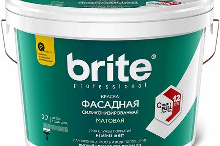 Профессиональная акриловая краска Brite Professional Quality Full Control фасадная матовая с добавлением силикона. Образует долговечное дышащее покрытие, устойчивое к атмосферным воздействиям и перепадам температур, в том числе в условиях северных широт.