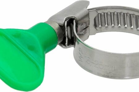 Хомут изготовлен из нержавеющей стали, снабжен удобной пластиковой ручкой. Предназначен для крепления труб, шлангов диаметром от 25 до 40 мм.