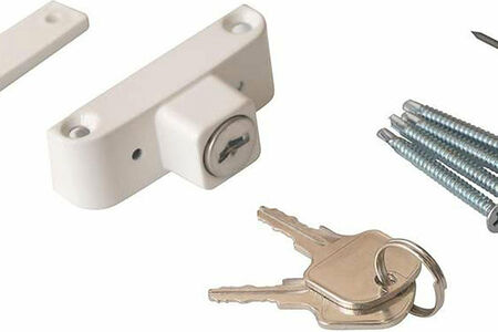 Замок-блокиратор для окна с цилиндром используется для защиты пластикового окна от детей и взлома. При этом устройство не препятствует открыванию в вертикальном режиме для проветривания. Замок устанавливается в нижней части окна под створкой без предварительной фрезеровки. Отличается компактными размерами. К замку прилагаются два ключа.