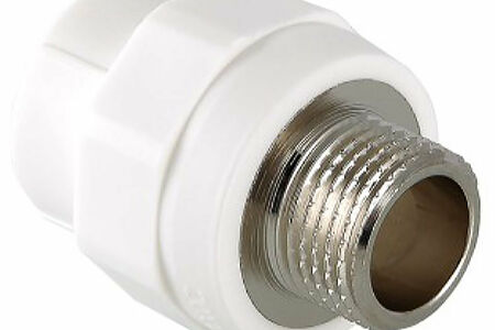 Прямой металлопластиковый фитинг для соединения полипропиленовой трубы и компонента инженерной системы с резьбовым подключением, 25 х 1/2". Резьба фитинга - наружная трубная по ГОСТу 6357.