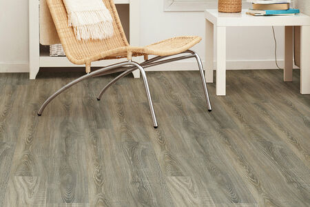 Однополосный декор без фасок создает ровное гладкое покрытие без видимых швов. Тщательно прорисованный рисунок в точности повторяет живой древесный узор из пор, прожилок и колец. Покрытие, выполненное в приглушенных серых тонах, прекрасно сочетается со светлыми стенами и мебелью, уравновешивает яркие акценты, делает интерьер более спокойным.