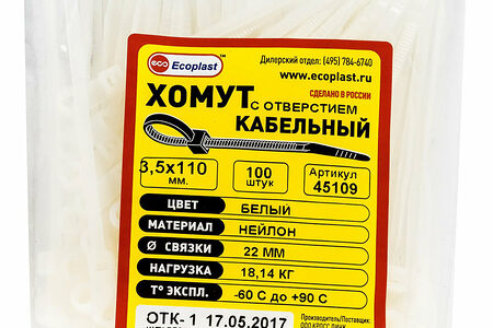 Хомуты кабельные выполнены из нейлона / полиамида (огнестойкий материал) и предназначены для обвязки кабельных пучков различных сечений (для стяжки кабеля). Имеют замок-застежку.