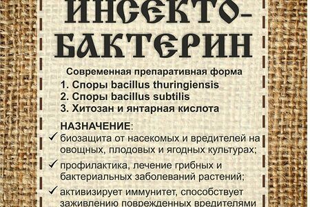 Биологическая защита от насекомых-вредителей. Профилактика, лечение грибковых и бактериальных заболеваний растений. В состав препарата Инсектобактерин входит янтарная кислота и хитозан - эффективные стимуляторы роста растений, которые активизируют иммунитет, способствуют заживлению поврежденных вредителями и болезнями частей растений, препятствуют развитию заболеваний.