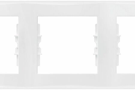 Монтажная рамка для розеток и выключателей рассчитана на три поста. Она имеет горизонтальное исполнение и активно используется в жилых и коммерческих помещениях. Белая глянцевая поверхность изделия поддается механической и химической очистке, стойкая к истиранию и ультрафиолетовому воздействию. Рамка легко монтируется и имеет длительный срок эксплуатации.