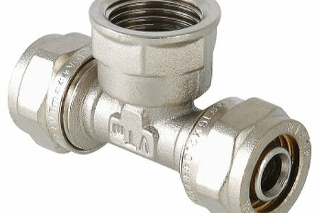 Трехсторонний латунный никелированный фитинг для подсоединения к металлопластиковому трубопроводу компонента с резьбовым подключением. Резьба фитинга - внутренняя трубная, 26 х 1", по ГОСТу 6357. Cерия VTm.332.N