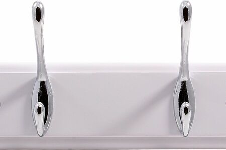 Классическая вешалка состоит из деревянной планки и металлических крючков. Данная модель настенной вешалки с двумя крючками, позволяет повесить верхнюю одежду, головные уборы, зонты. Крючки крепятся к планке винтом с обратной стороны.