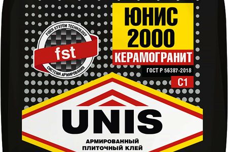 Клей Юнис 2000: усиленный клей для укладки всех видов керамической, легкой каменной плитки, клинкерной плитки, керамогранита форматом до 60х60 на полы и 45x45 см на стены внутри сухих, влажных, отапливаемых и неотапливаемых помещении. Может также применяться для базового выравнивания поверхностей слоем от 2 до 15 мм. Применяется для облицовки обогреваемых стяжек с системой Теплый пол.