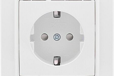 Минск Розетка 1-местная СП с заземлением 16А белая с защ. штор. EKF Basic