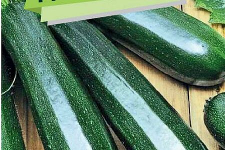 Раннеспелый сверхурожайный гибрид (дает 20 и более плодов с куста), с мощным типом растения. Плоды цилиндрической формы, с гладкой и ровной поверхностью, темно-зеленого цвета со светлыми штрихами. Мякоть белая, плотная, нежная. Гибрид ДИАМАНТ F1 хорош для хранения, а молодые плоды идеальны для консервирования.