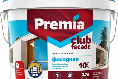 Краска фасадная высокоукрывистая PREMIA CLUB белая база А ведро 2,7 л доставка