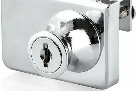 Механизм для запирания цельностеклянных створок шкафа. Накладной мебельный замок очень прост в монтаже и эксплуатации. Однако его стоит устанавливать, когда одних магнитных держателей не хватает. Либо когда доступ к содержимому шкафчика нужно ограничить.
