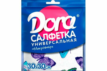 Салфетка из микрофибры DORA с цветным рисунок предназначена для сухой и влажной уборки любых поверхностей.