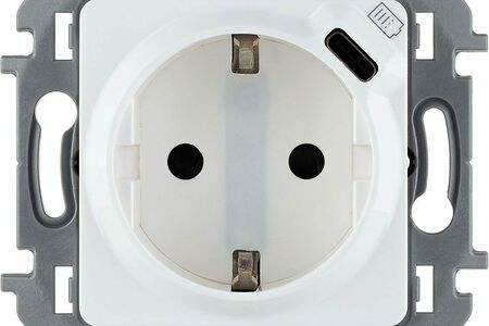 Данная комбинированная розетка 2К+З с зарядным устройством USB типа С применяется для одновременного электропитания бытовых потребителей и зарядки мобильного устройства. Оснащена интегрированными шторками, которые защищают детей и других пользователей от удара электрическим током.