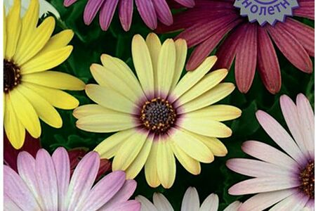 Остеоспермум Акилла Гранд Каньон - красивый цветок из семейства астровых, похожий на яркую ромашку. Растение родом из Южной Африки, светолюбиво и устойчиво к засухе. Сорт отличается крупными цветками, до 5-6 см в диаметре. В смеси присутствуют различные окраски, традиционные: белая, кремовая, лавандовая и новые: желтая, персиковая, бордо.