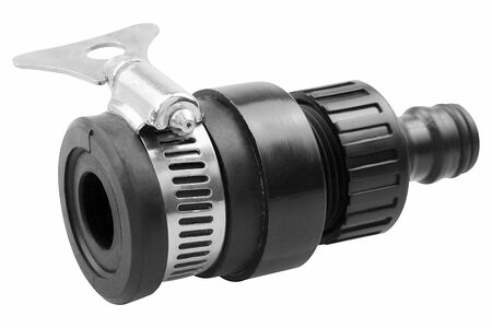 Коннектор используется на безрезьбовых кранах и позволяет подсоединять поливочный шланг к центральной системе подачи воды. Данное приспособление позволяет легко создать герметичное муфтовое соединение. Соединитель изготовлен из прочного пластика, место крепления к крану затягивается металлическим хомутом, кроме того, такое соединение отличается универсальностью и удобной эксплуатацией.