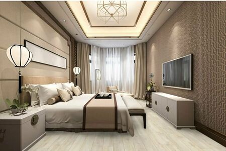 Светлый ламинат выглядит легко и элегантно, наполняет помещение воздухом и теплом.